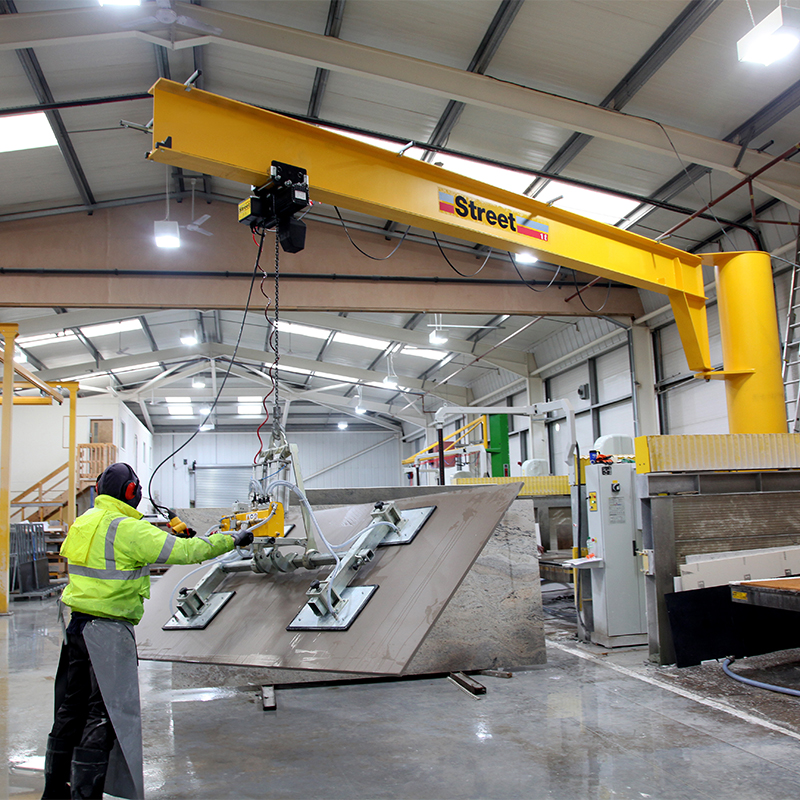 The Slewing Jib Crane is a versatile and space-efficient lifting solution designed for localized material handling applications. Featuring a rotating jib arm, it allows smooth and precise load movement within a defined working radius, making it ideal for workstations, production lines, warehouses, and maintenance areas where flexibility and efficiency are essential.